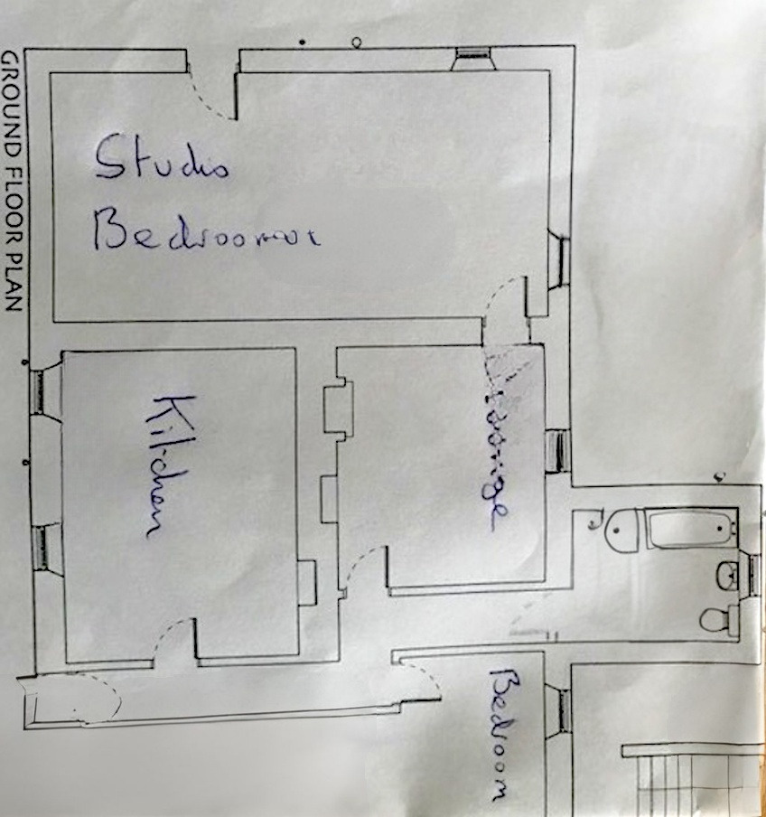 Large Ground floor flat, two bedrooms, with garden and separate studio/workshop.