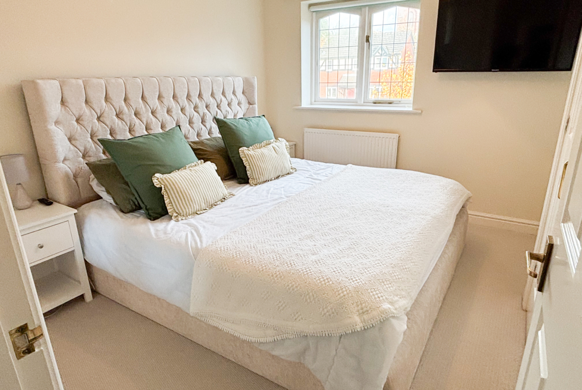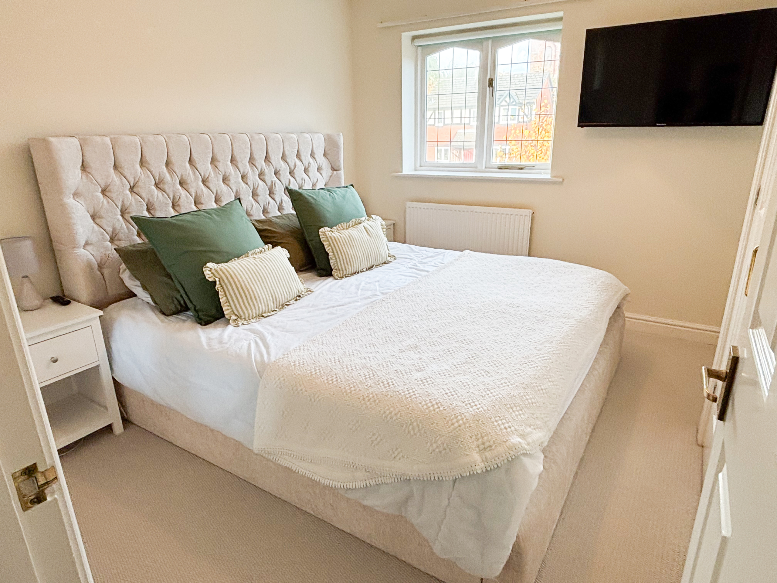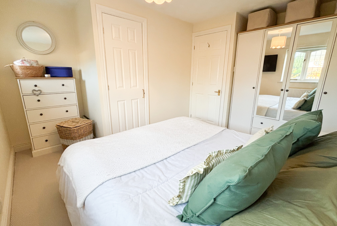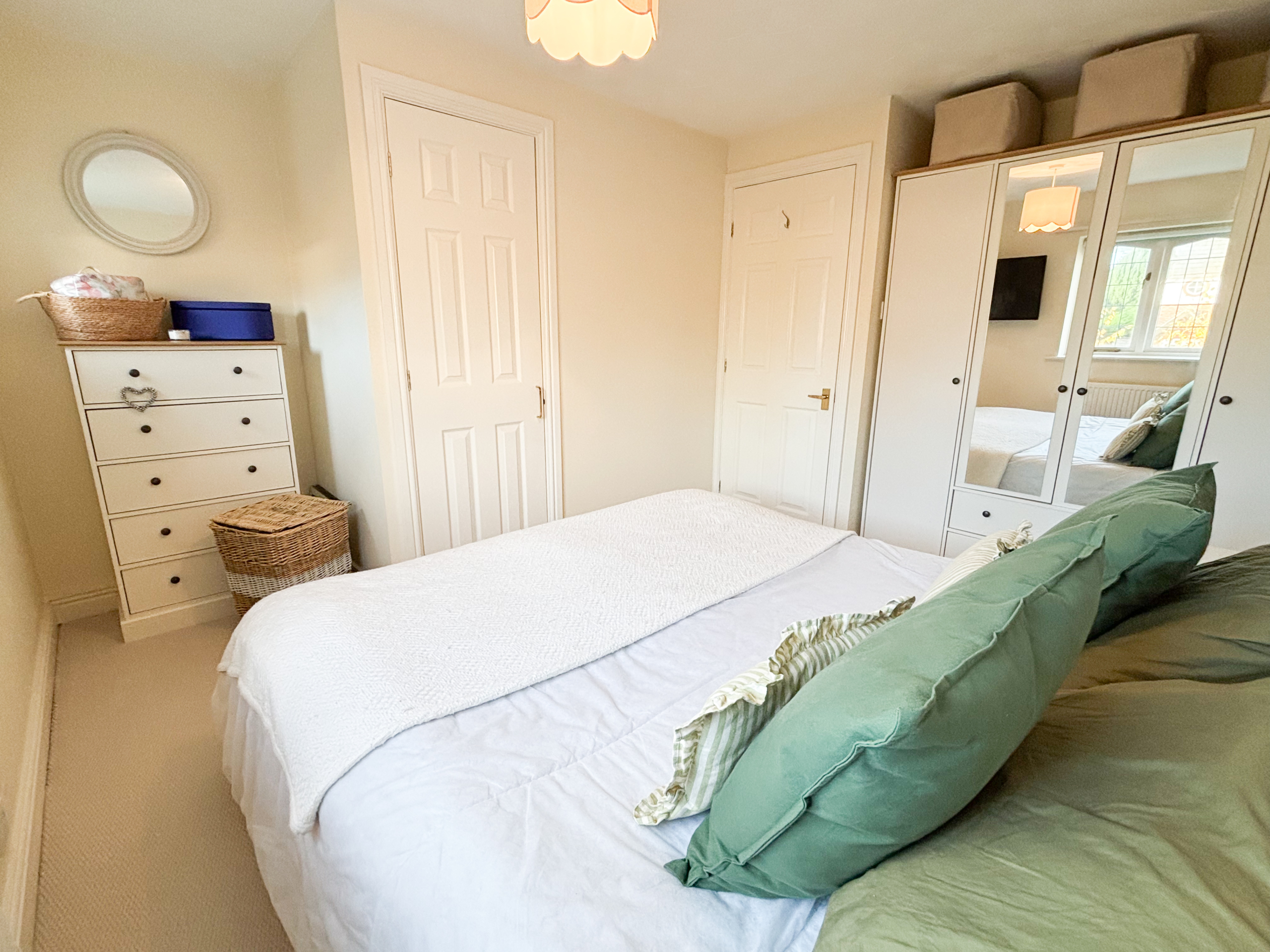 To the first floor are two well-proportioned bedrooms. The main bedroom comfortably accommodates a super king-size bed and benefits from a pleasant outlook with mature trees providing privacy and views towards the church tower. The second bedroom is not overlooked and enjoys distant views towards the Bickerton Hills. The bathroom is fitted with a modern suite including an electric shower and updated fixtures and fittings.