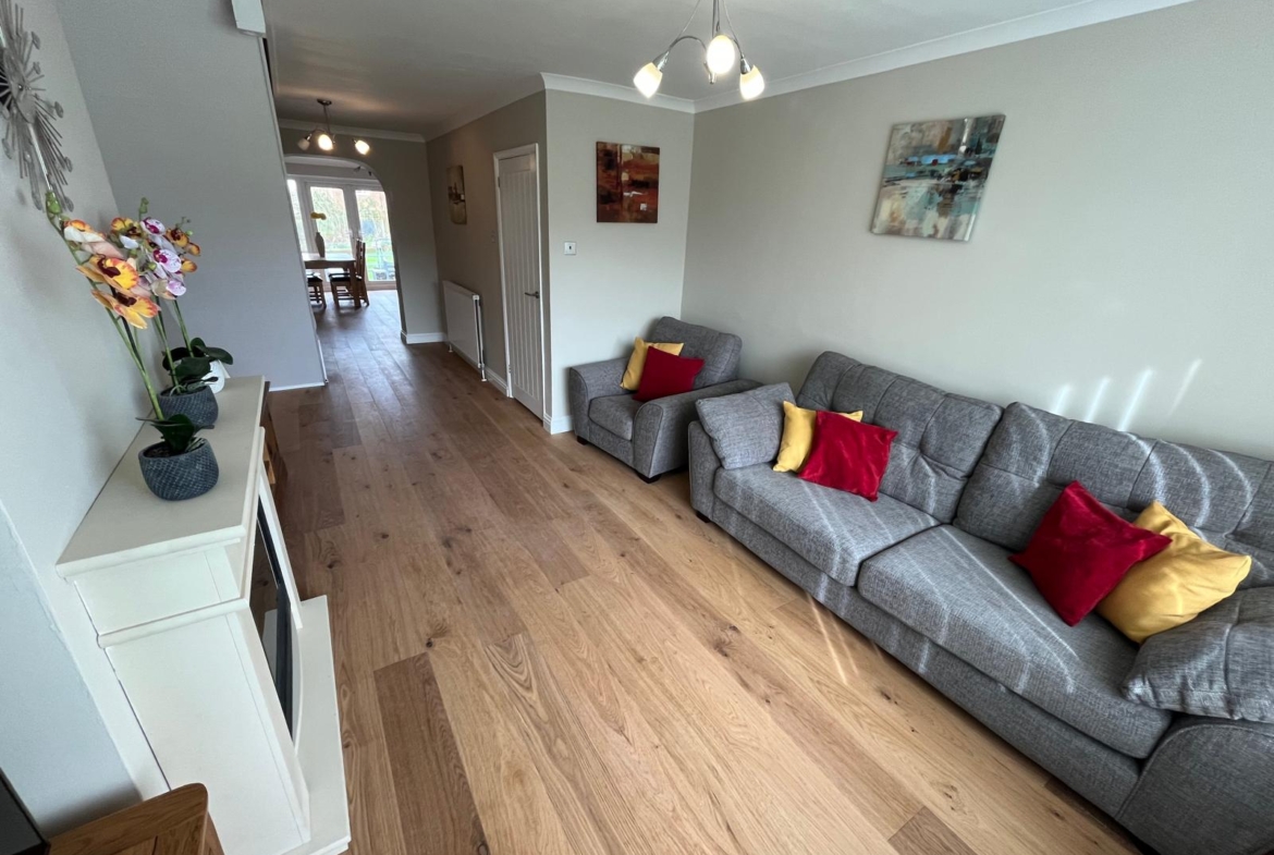 Ideal for families or buyers seeking a peaceful village setting, the property further benefits from a large landscaped garden, garage, and an extended driveway providing ample parking.