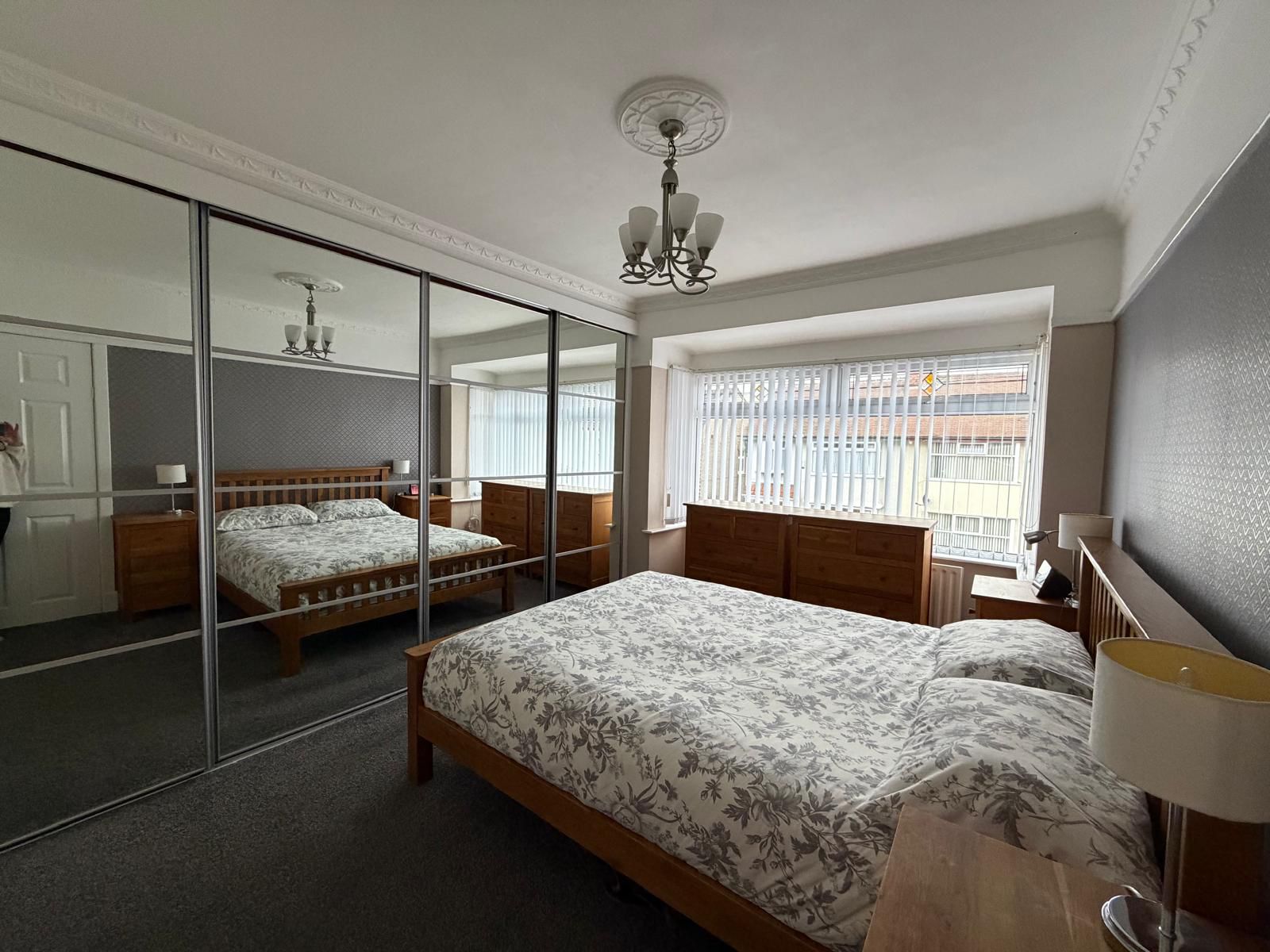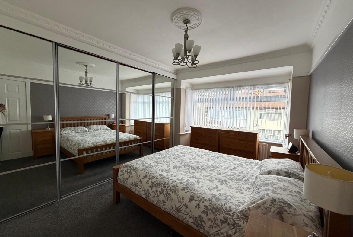 Bedroom One – 4.20 x 3.34 (13’10” x 11’2”) – mirrored wardrobes, Radiator, upvc bay window to front aspect.