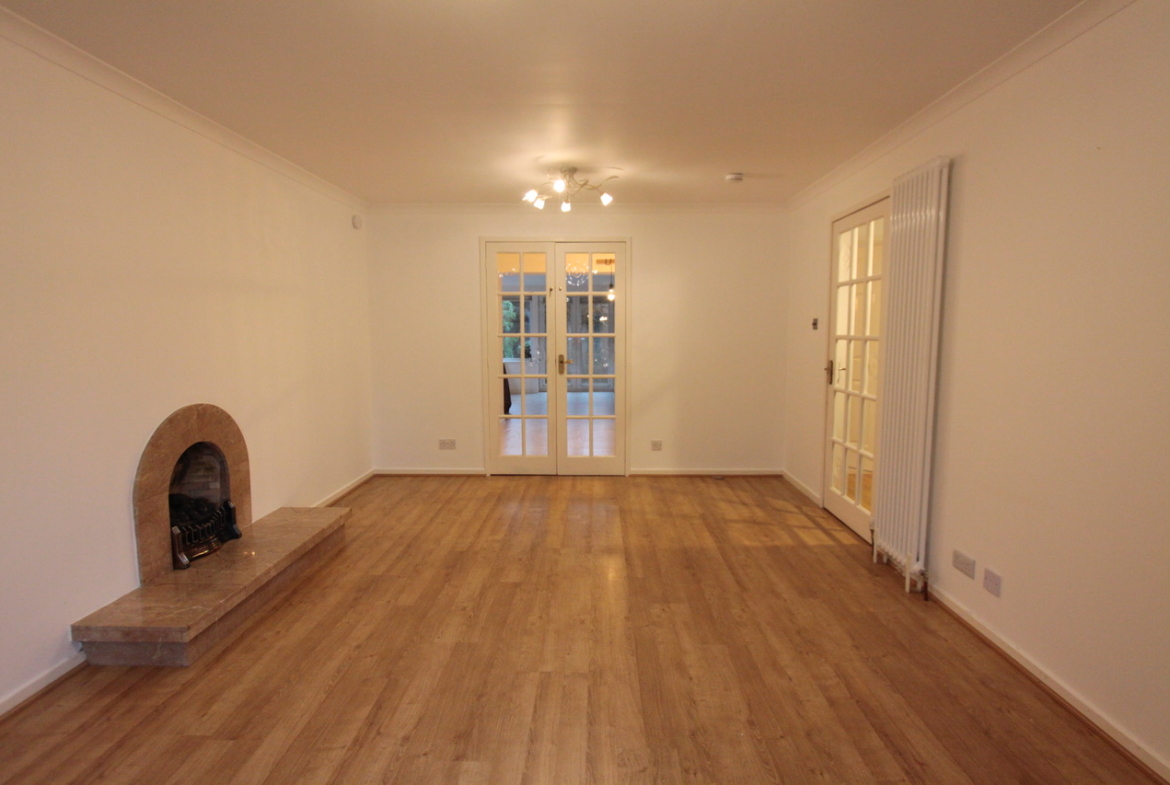 Lounge with feature open coal effect gas fire and glazed double Georgian style doors leading to the family room.