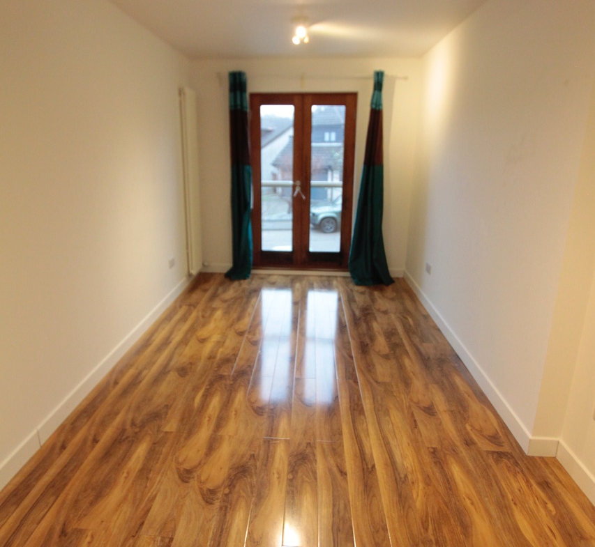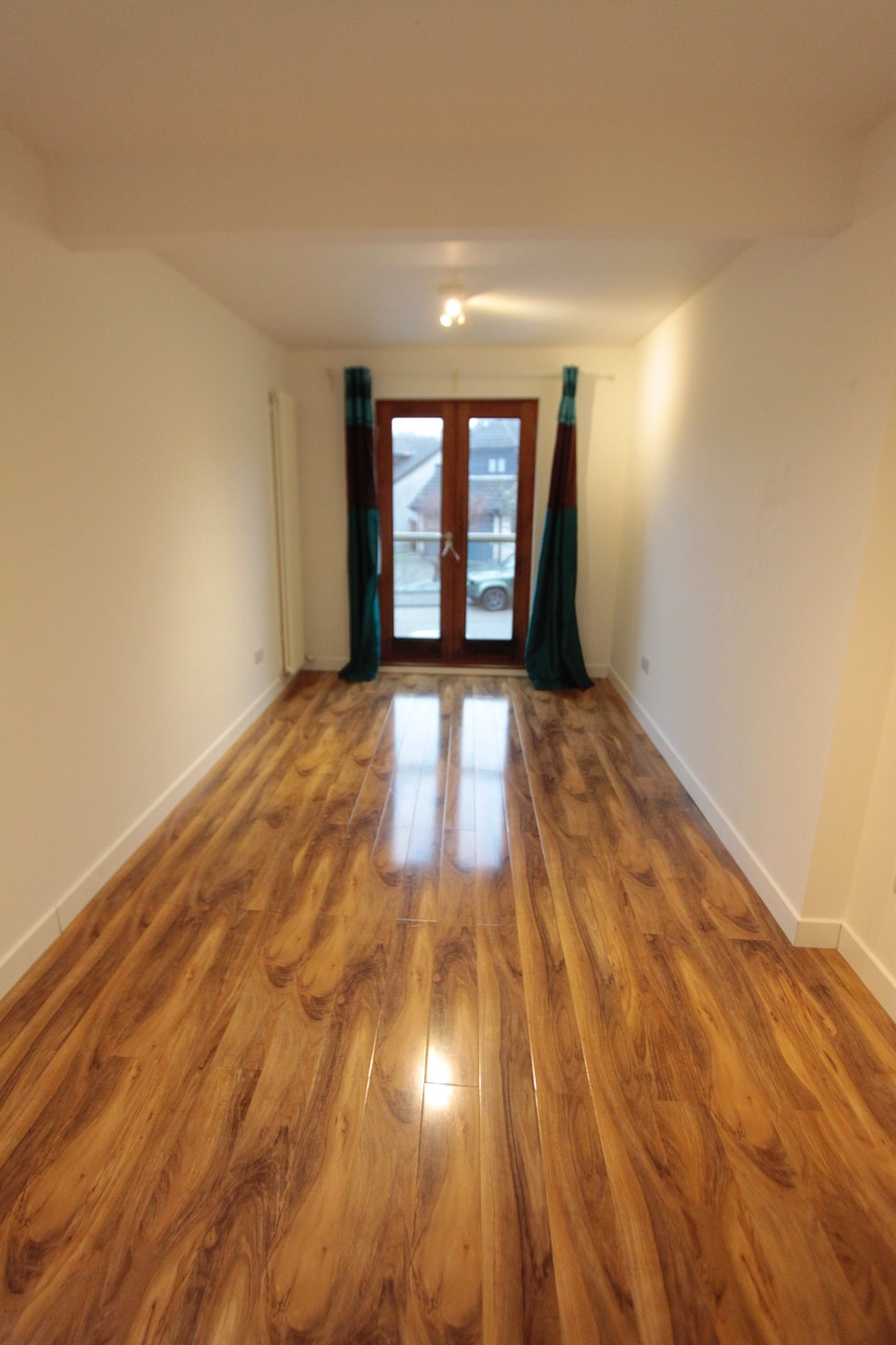 Bedroom 2 has feature walnut flooring and double doors leading to Juliet balcony to front.