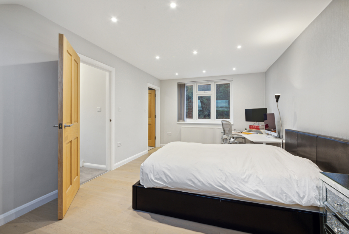 Second Floor: The second floor is dedicated to a spacious bedroom. Measuring an impressive area, this bright and airy room benefits from eaves storage and a luxury en-suite bathroom, offering a private sanctuary away from the rest of the house.