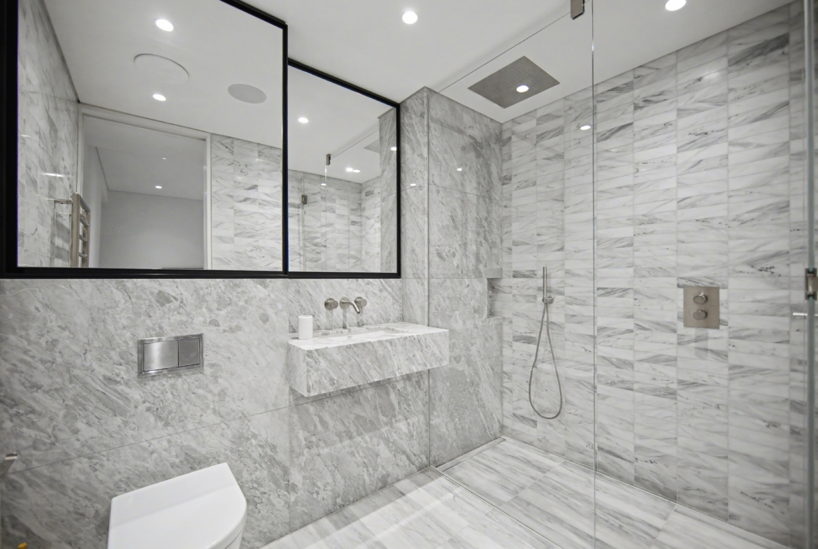 an open plan kitchen/living area, large bedroom and modern bathroom, and a shower room completing the