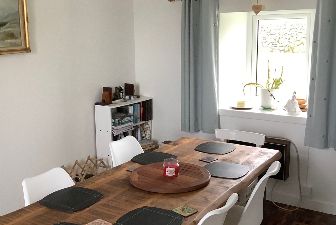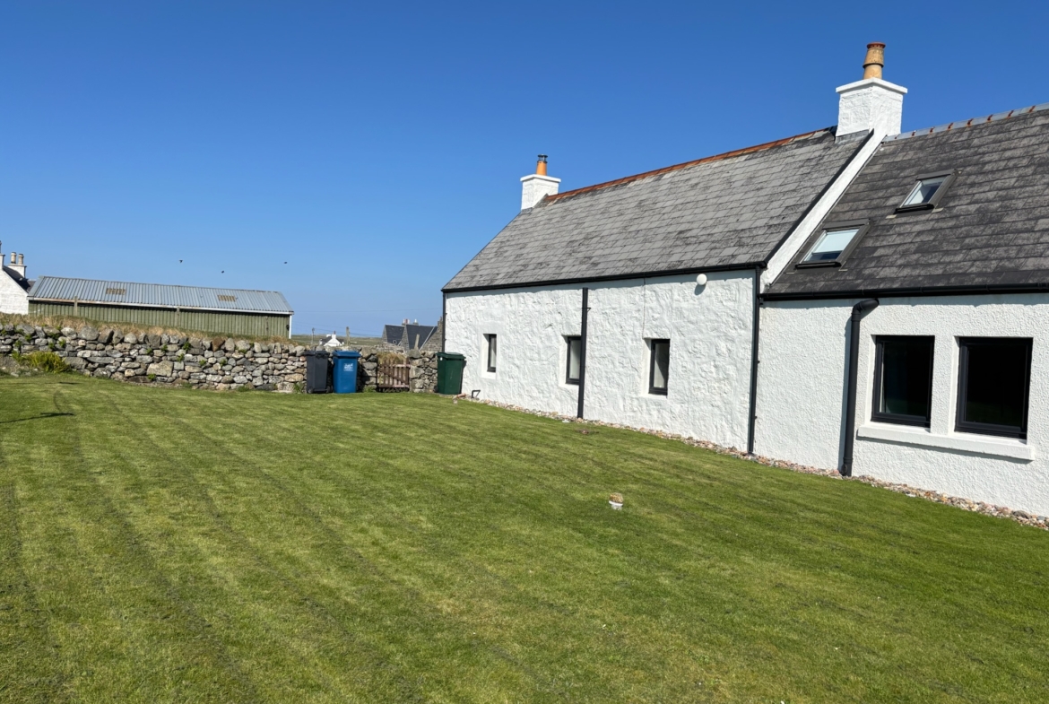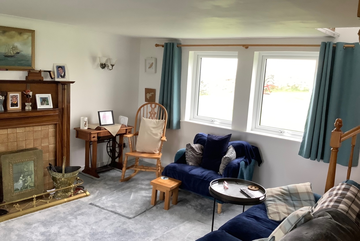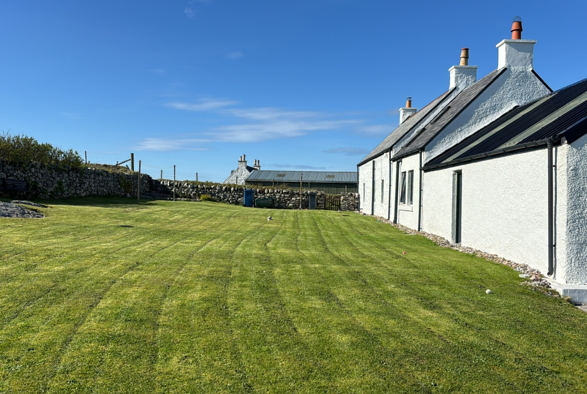 Beautiful traditional family Croft house with large spacious and bright living accommodation. Large lounge 5m x 5m, good sized dining room, beautiful dining kitchen, 3 bedrooms, one with toilet and wash hand basin. Entrance porch (boot room), family bathroom, Large garage, 2 rooms, suitable for storage of boat, surf gear or potential for development.