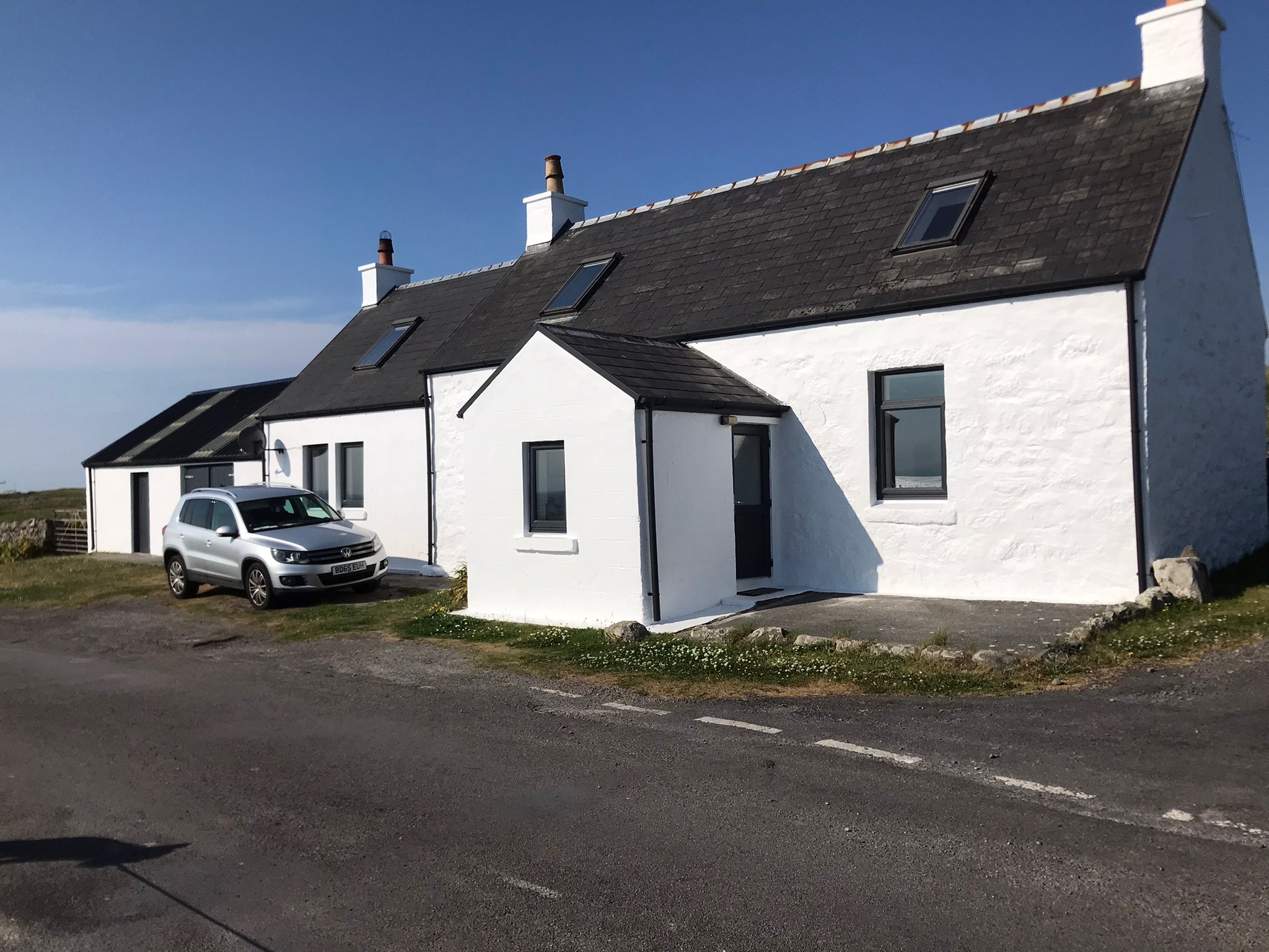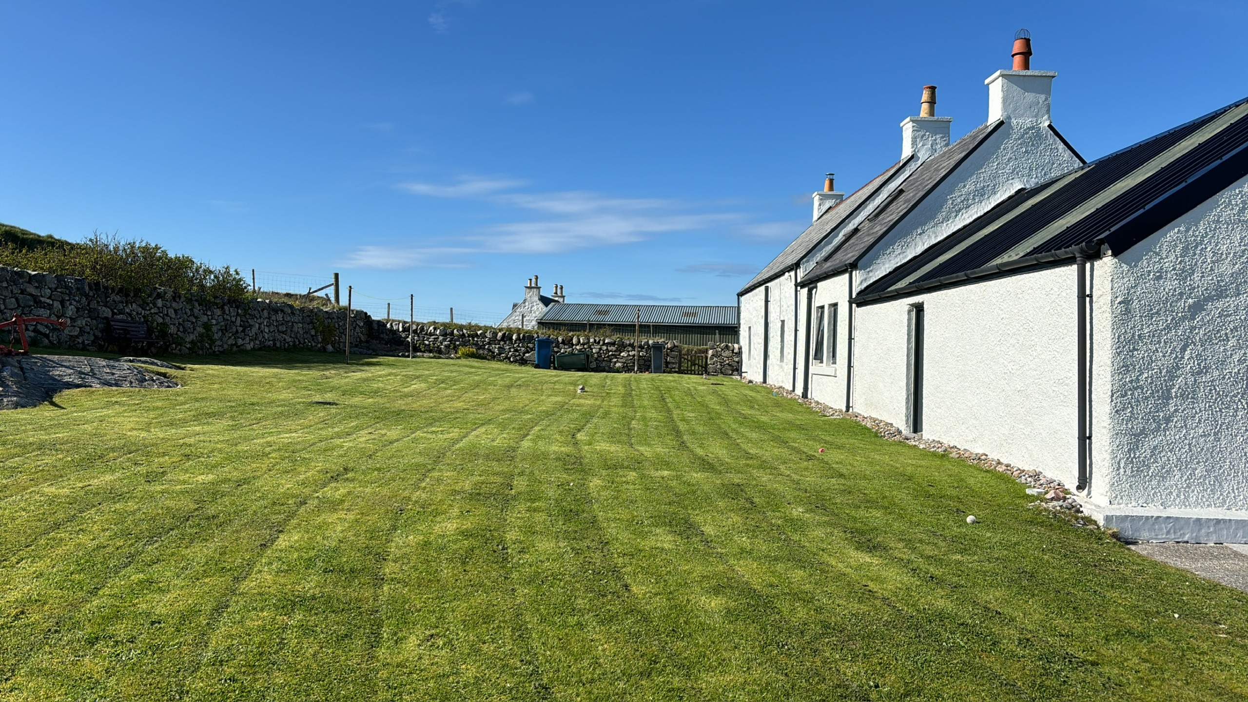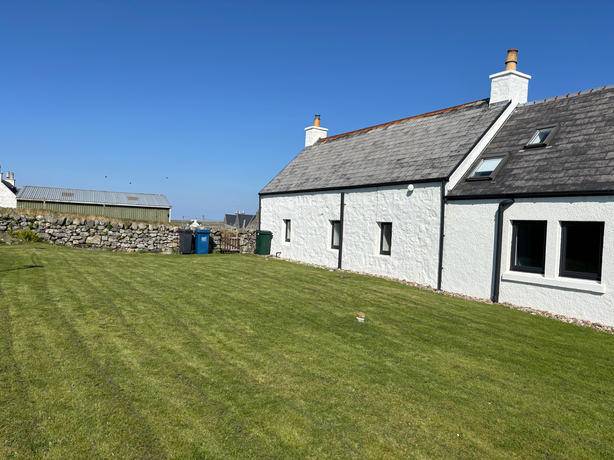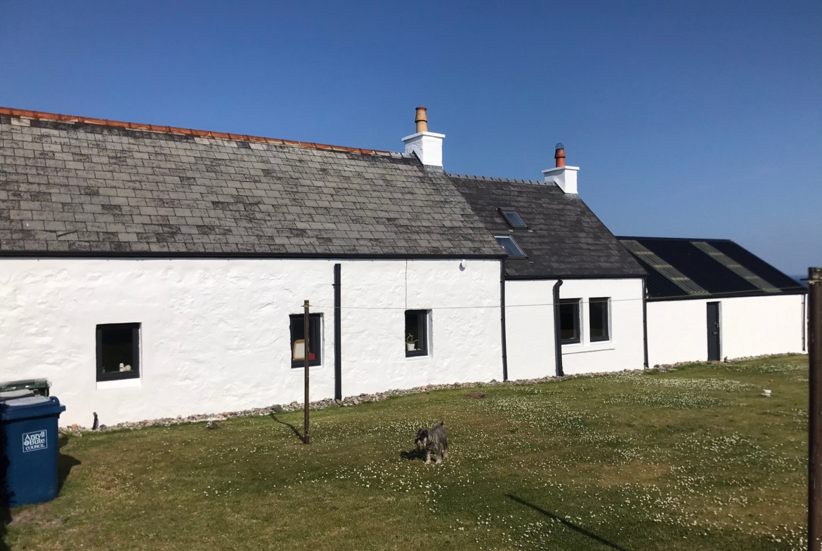 Beautiful traditional family Croft house with large spacious and bright living accommodation. Large lounge 5m x 5m, good sized dining room, beautiful dining kitchen, 3 bedrooms, one with toilet and wash hand basin. Entrance porch (boot room), family bathroom, Large garage, 2 rooms, suitable for storage of boat, surf gear or potential for development.