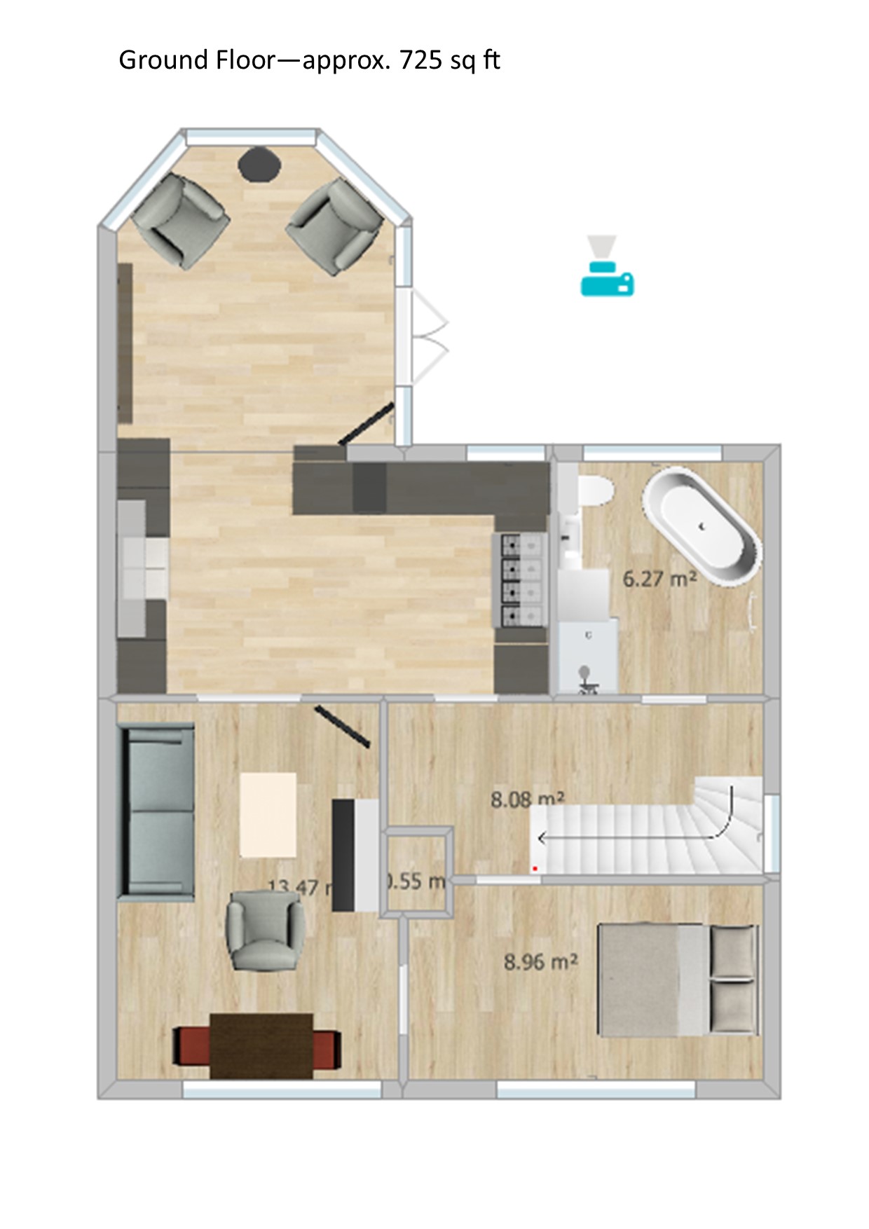 There is a downstairs double bedroom with an open aspect, that could also function as a separate sitting room or dining room, as well as the main sitting room off the kitchen.