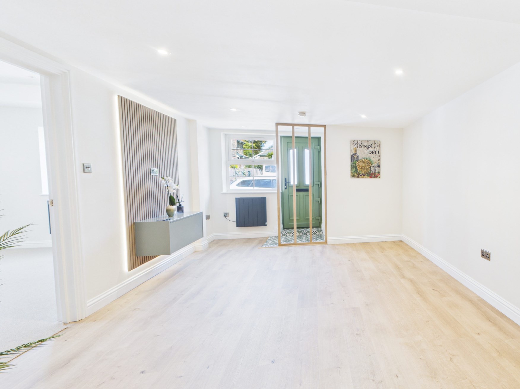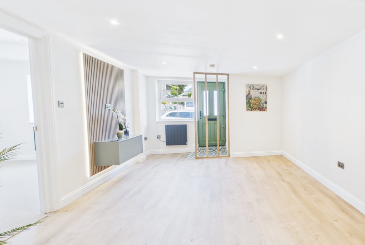 The luxuriously appointed accommodation centres around a 23ft open-plan kitchen and living room, with high quality fitted kitchen and integrated appliances. Quartz worktop, boiling tap with wooden flooring throughout. The property further features a large shower room with under floor heating, and the bedroom is double aspect with fitted wardrobe cupboards. The property further benefits from smart app controlled electric heating and new double glazing throughout. To the front of the property is a large private driveway for parking. The property is being sold with a share of the freehold. An internal viewing is recommended to appreciate the quality on offer following this superb conversion.