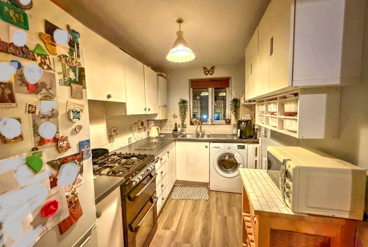 The kitchen area, thoughtfully designed to maximise space, is equipped with essential fittings and offers ample storage and work surfaces, perfect for preparing meals. Adjacent to the kitchen, the bathroom features a modern three-piece suite, including a shower over the bath, providing both convenience and style.