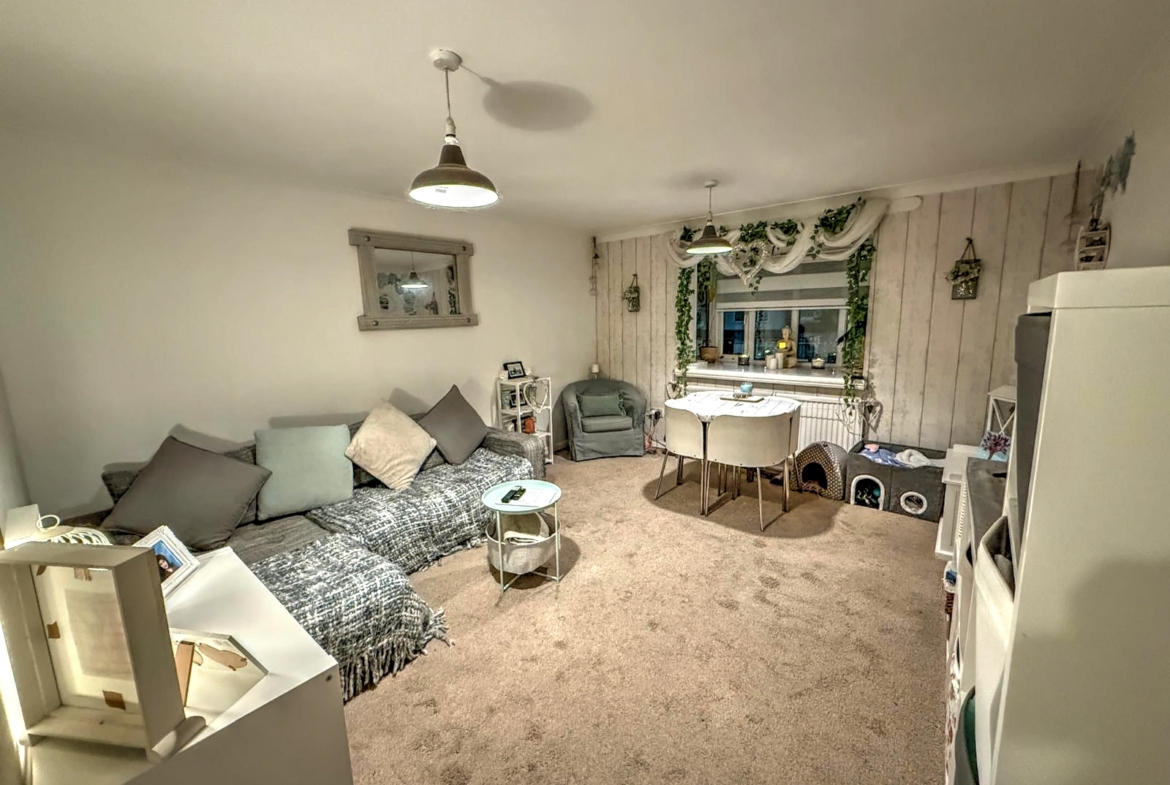 Upon entering, you are welcomed into a bright and airy reception room, ideal for relaxing or entertaining guests. The space benefits from UPVC double glazed windows, allowing plenty of natural light to flood in while ensuring energy efficiency and noise reduction. The room’s neutral décor provides a blank canvas, ready for your personal touch.