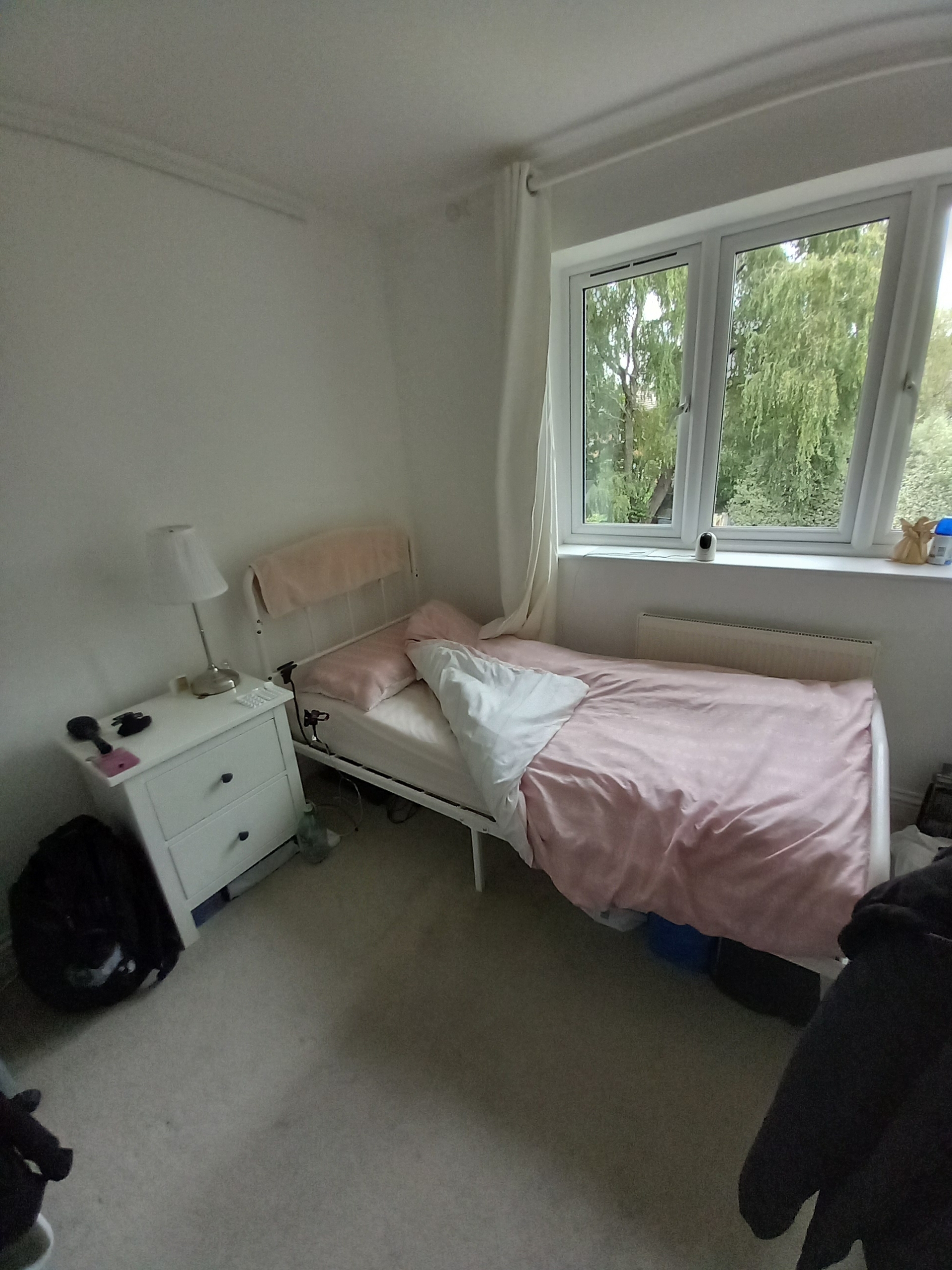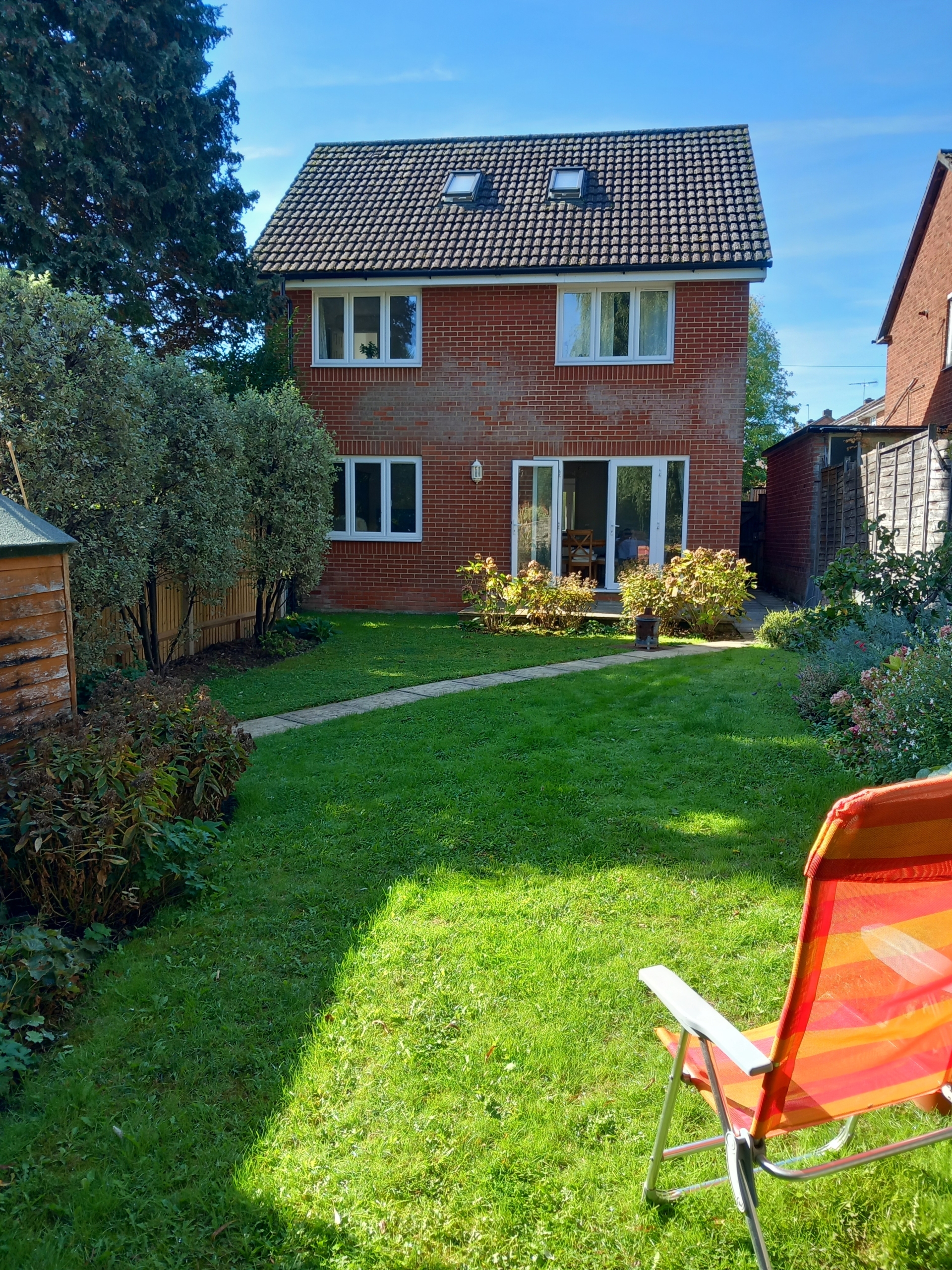 1. Detached well mainted 4 bedroom house in quiet street. Off road parking for two cars. Solar panels. Low energy bills. Secluded mature garden. Ground floor:Fitted kitchen with building appliances. Light hallway. Cloakroom with wc and sink. Spacious lounge with laminated flooring. Stairs to first floor.  First floor.  Bedroom 1; spacious double with ensuite shower room and toilet. Bedroom 2; double bed room. Bedroom 3; single bedroom. Family bathroom with shower over bath and toilet. Second floor. Bedroom 4 spacious and light master bedroom with ensuite shower room and toilet.  4 build in storage cupboards.  Probably in short walking distance a primary school, a secondary  school and bus stop, local shops. Short driving distance, (5 minutes) from a big shopping centre, which a choice of large supermarkets and other stores. 5 minutes drive from motorway junction, 10 minutes drive to train station and airport, 15 minutes drive Southampton town centre. Winchester and sea side within 25 minutes drive.
