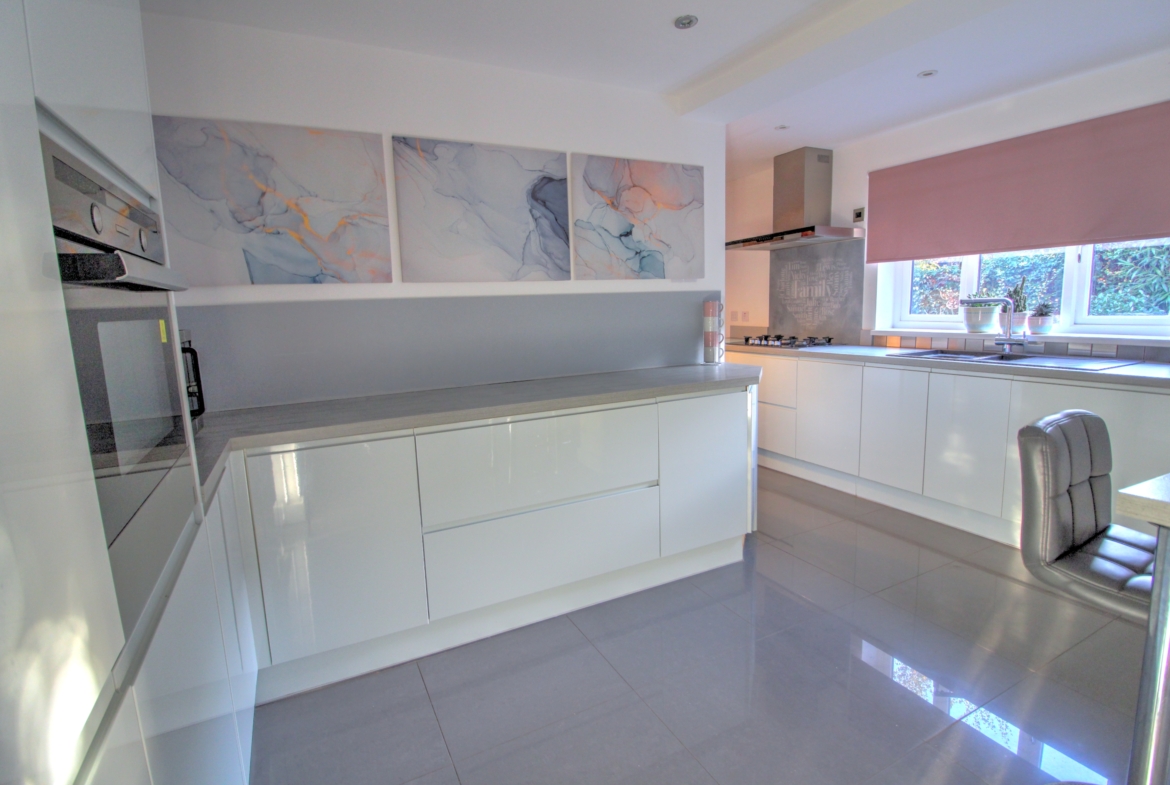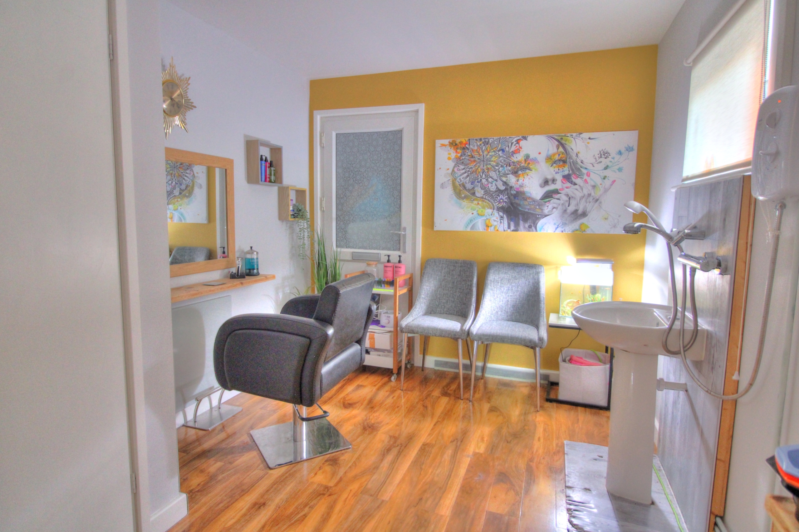 Upon entering the property, you are greeted by a spacious reception room that leads into the modern and stylish kitchen breakfast area. The kitchen boasts two breakfast bars, perfect for enjoying your morning coffee or hosting guests for a casual meal. With an additional Dining room area with French doors leading to the rear garden.The ground floor also features a bedroom/office that is currently being used as a salon, providing flexibility for those who work from home or need an extra bedroom.