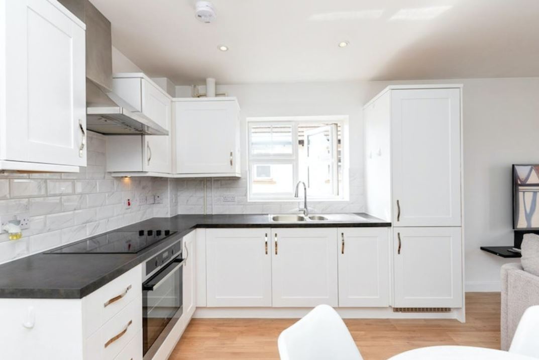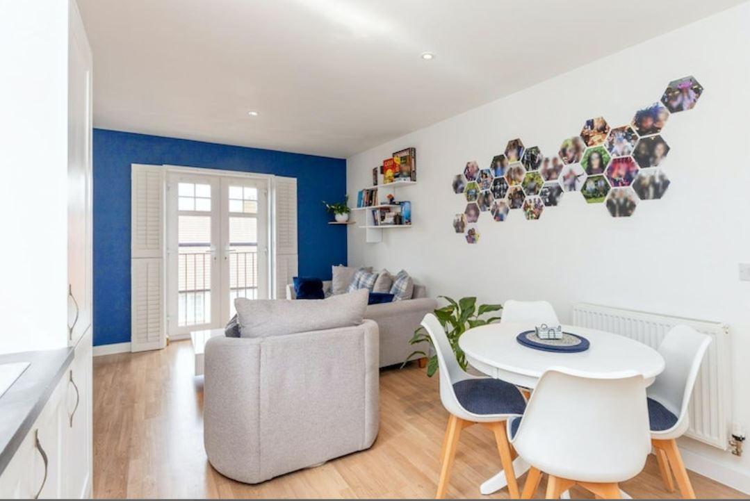 Features include an entrance hall with large storage cupboard, open-plan sitting and dining areas, modern re-fitted kitchen with integrated appliances including a dishwasher.