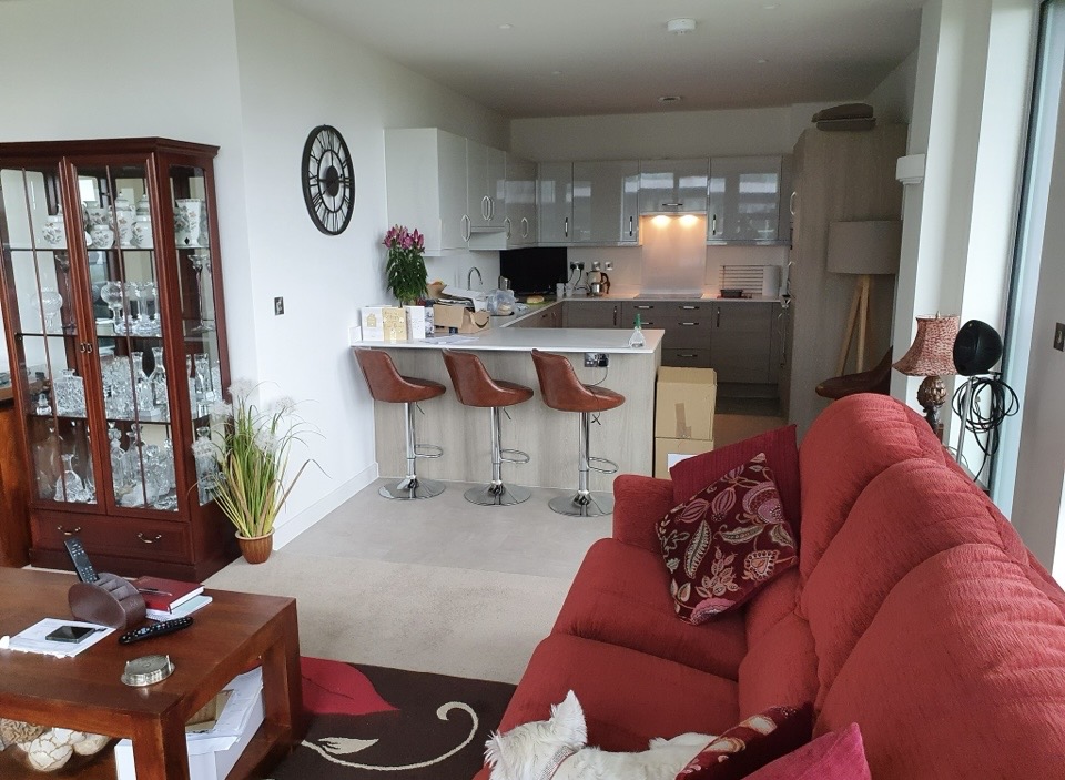 – large open plan lounge /kitchen with built in Neff appliances