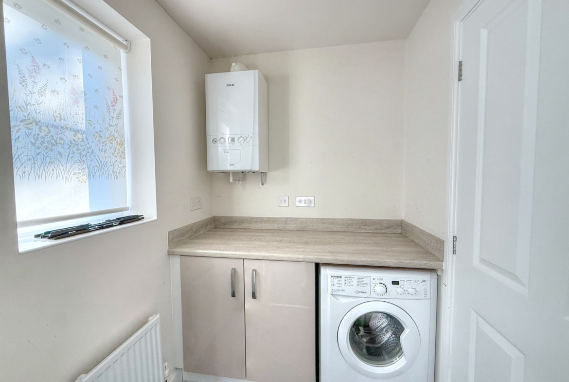 Additional features of the property include a downstairs WC for guests, a utility room with a boiler and plumbing for a washing machine, and a single garage with power and lighting. The driveway provides parking for at least two vehicles, making it ideal for those with multiple cars or visitors.