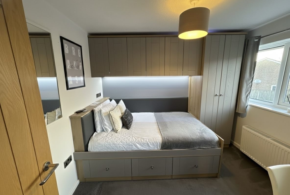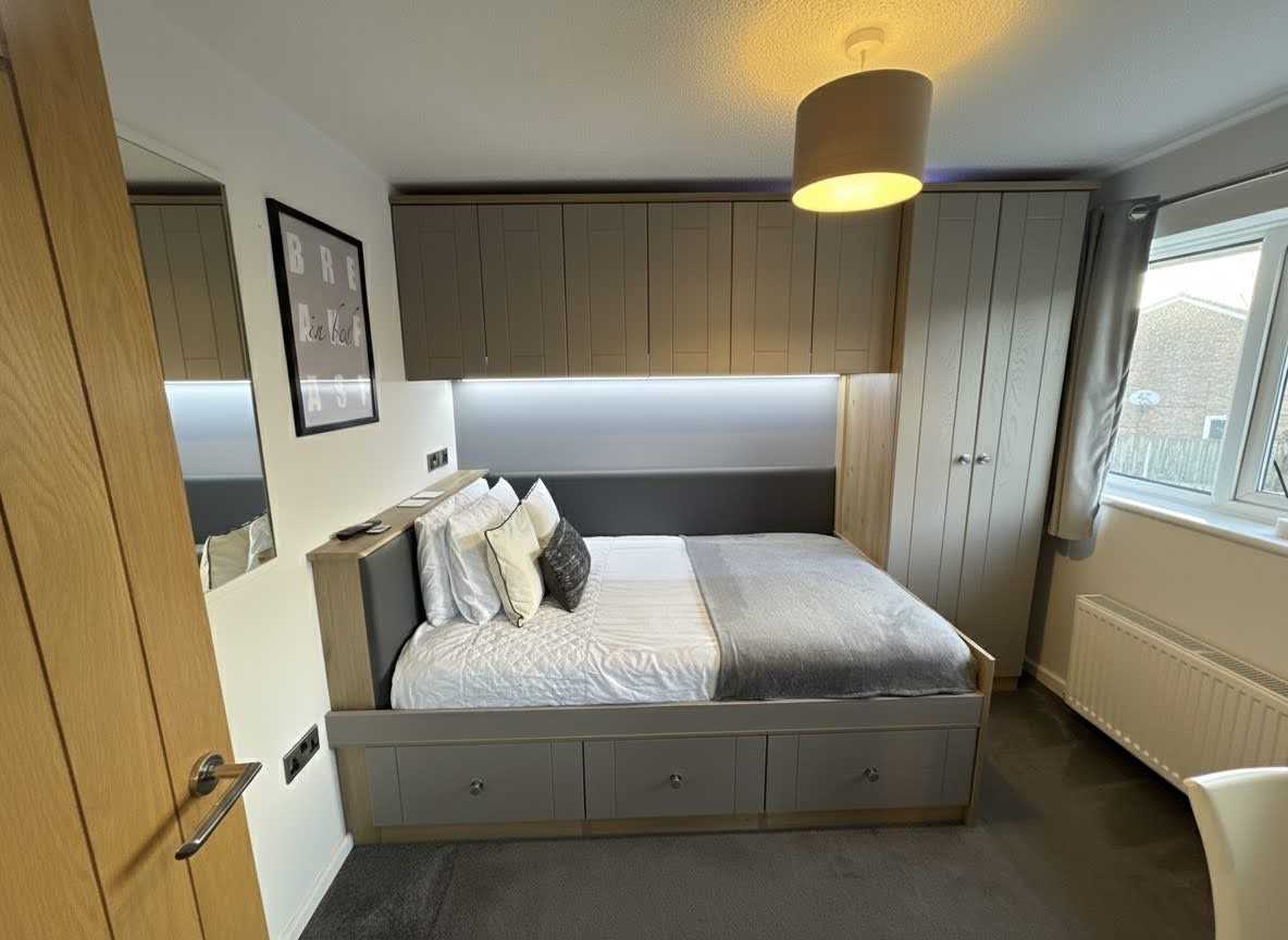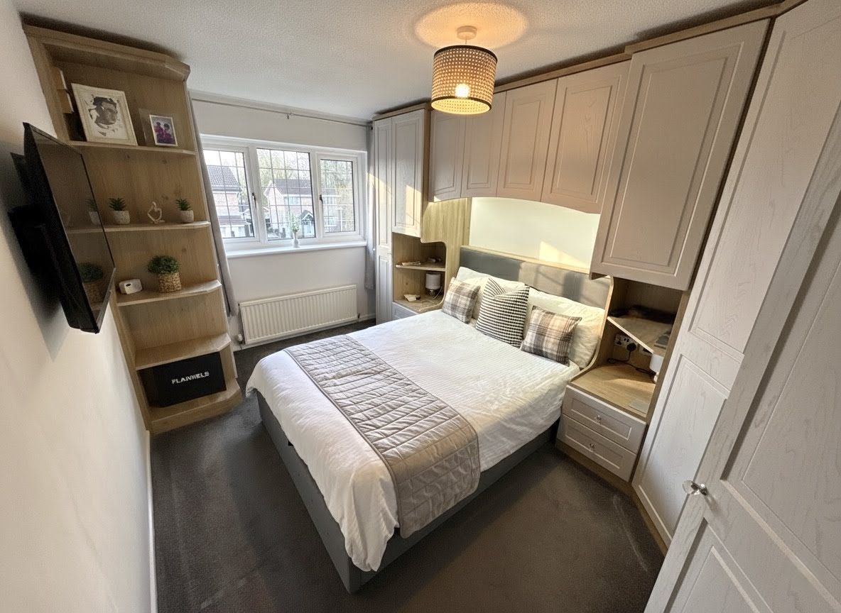 Carpeted with double glazed window to the front of the house, radiator and various modern fitted wardrobes.