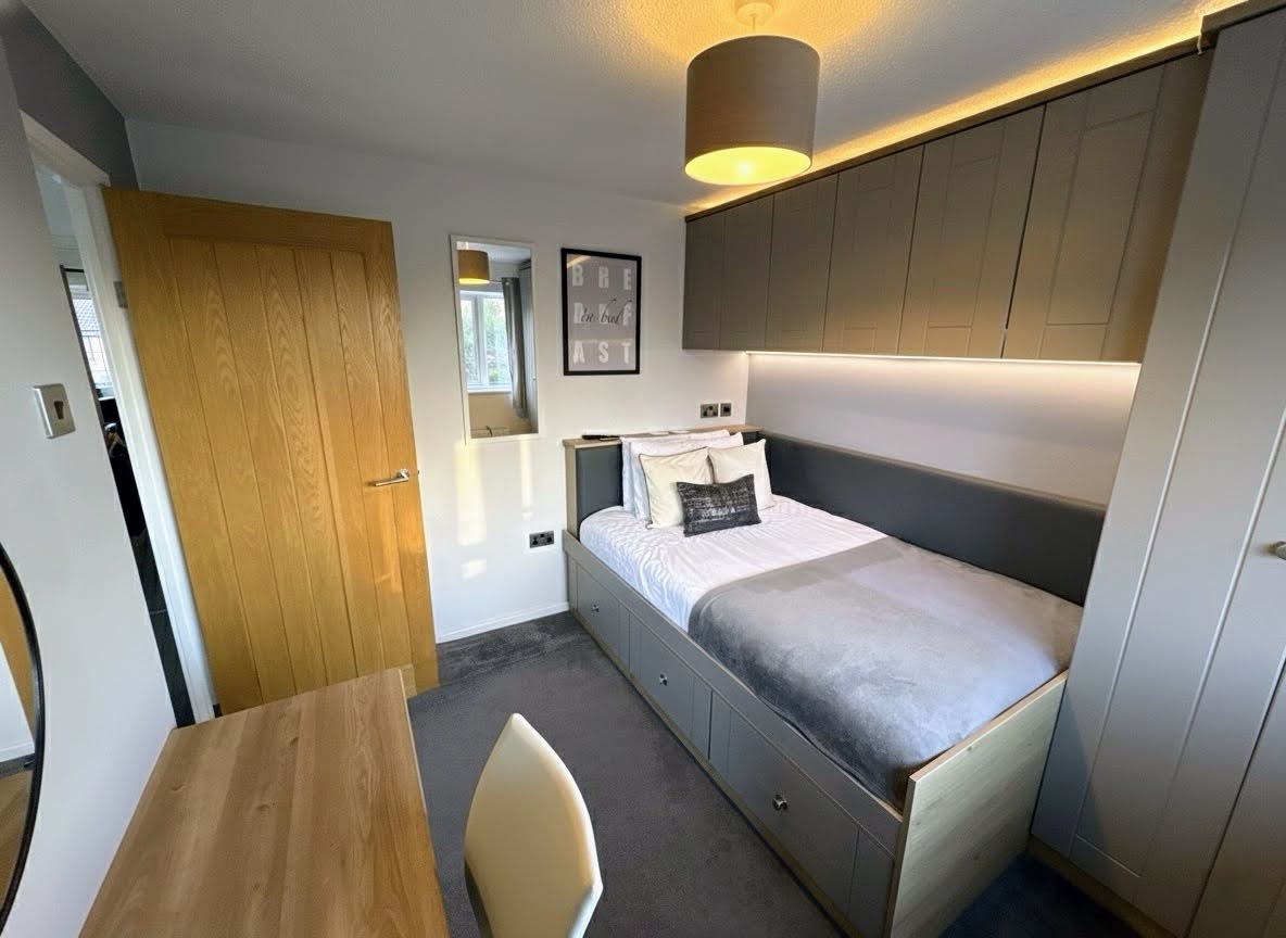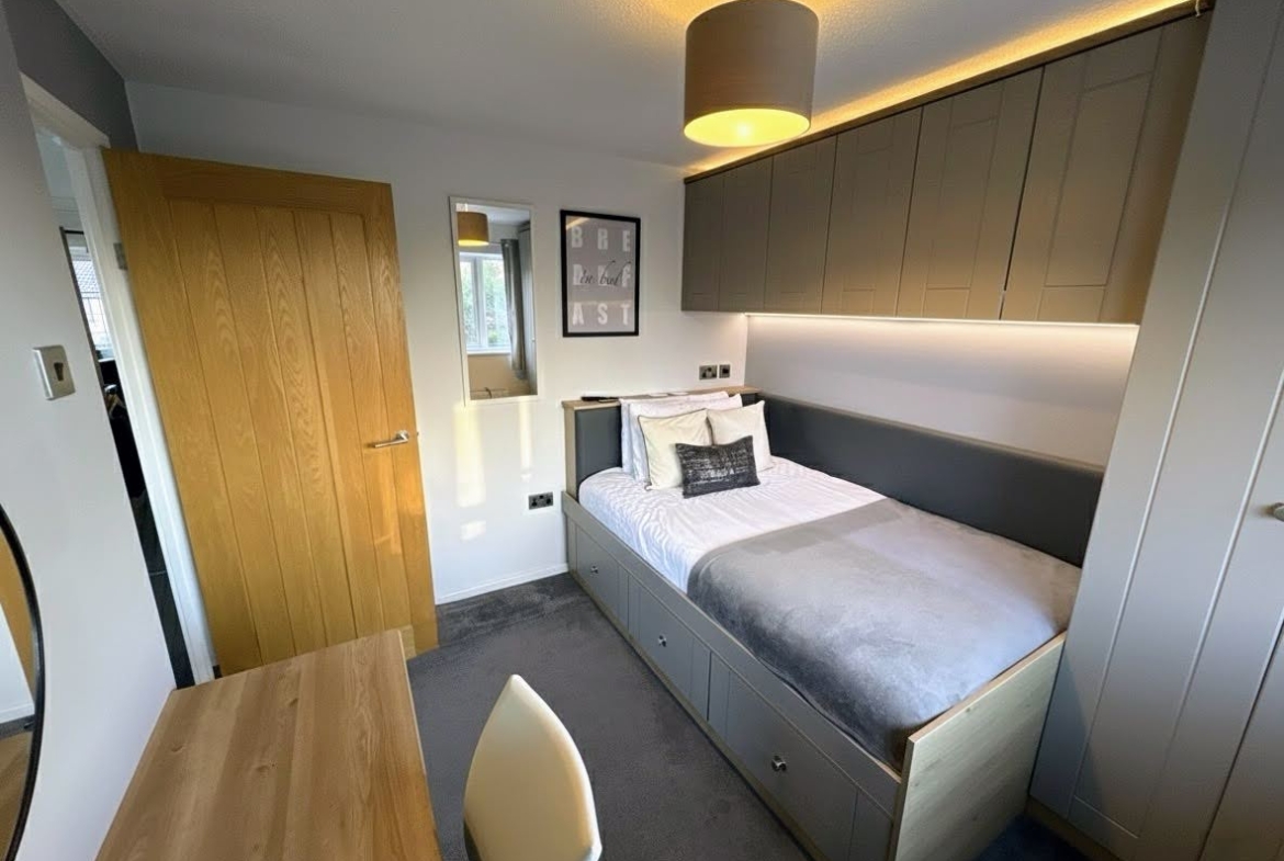 Carpeted with double glazed window to the rear of the property, fitted wardrobes and bed, fitted desk and radiator.