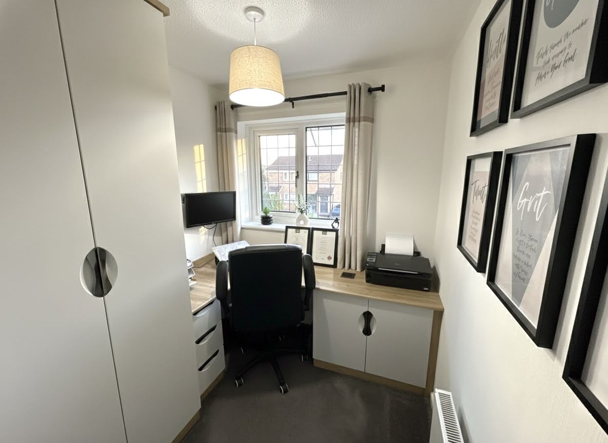Upstairs off the bright landing you are greeted with 3 bedrooms, all with modern fitted furniture, the 3rd bedroom of which is currently used as an office. There is also a modern bathroom with electric shower over the bath, shower screen, integrated sink & toilet vanity unit, heated towel rail and a light up mirror. From the landing you can also access the loft hatch to enter into the fully converted loft space with roof skylight, wall coverings, carpet and separate wardrobe area.