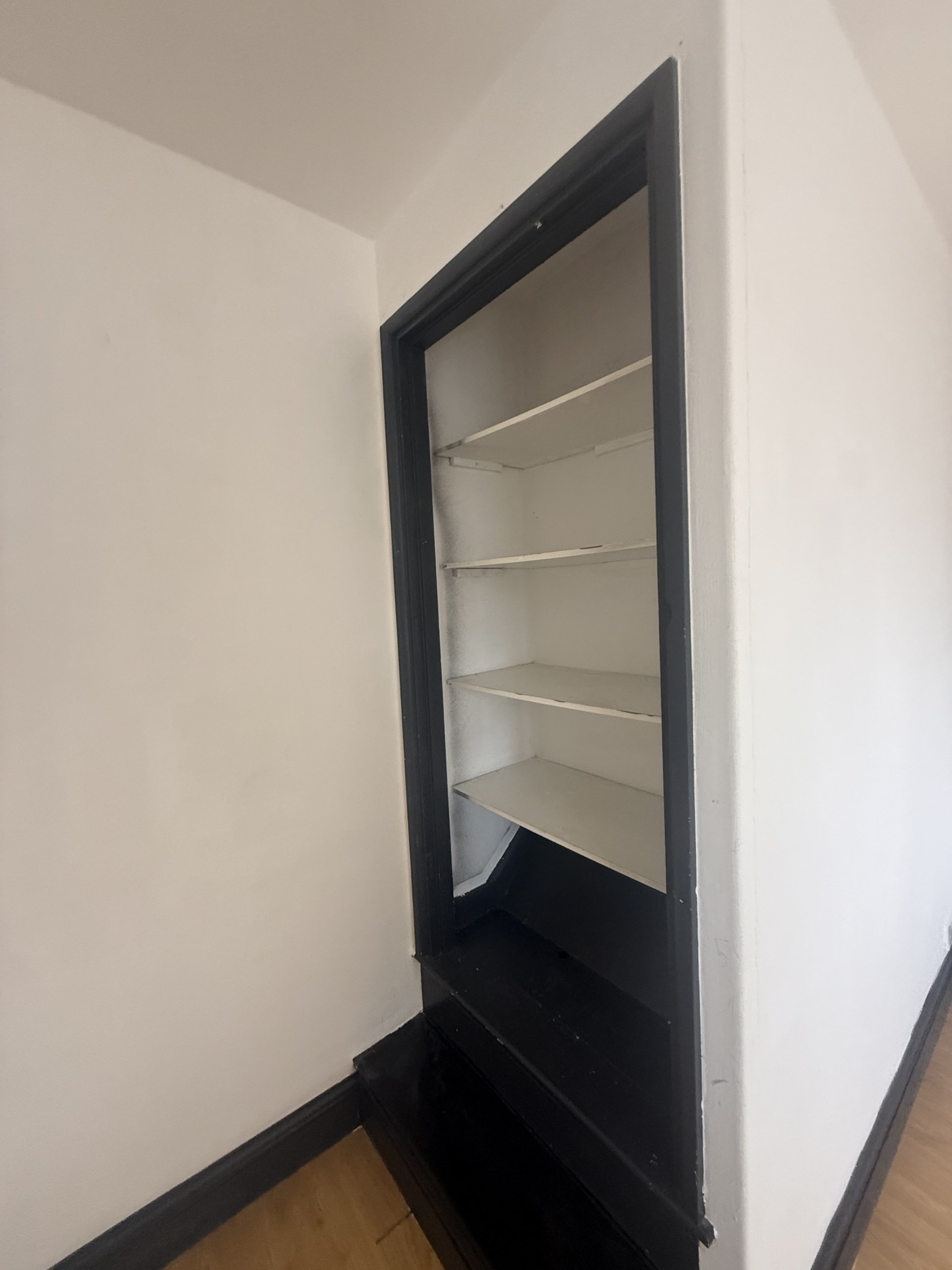 • Right of door: 1075 mm + cupboard 550 × 890 mm + wall 1700 mm
