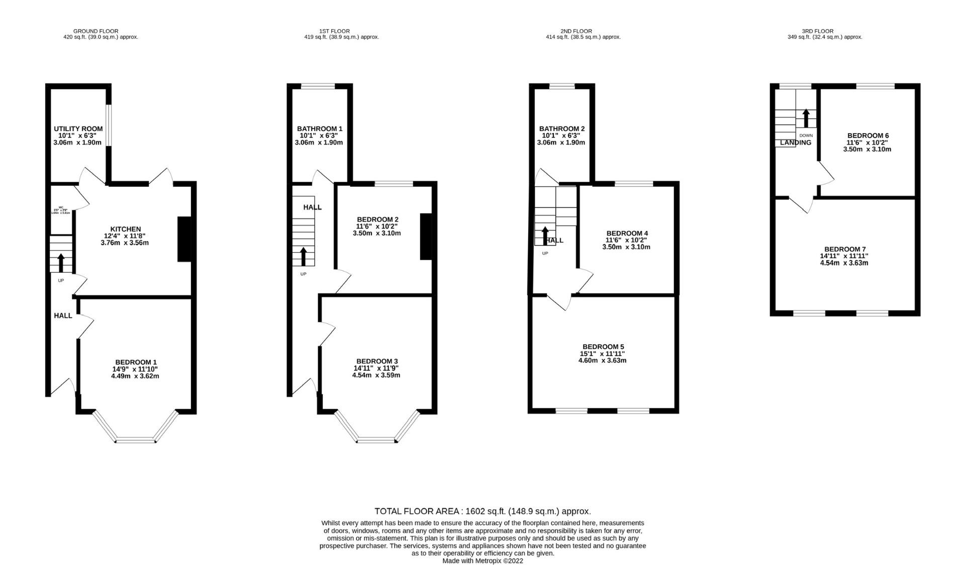 Bedroom 7 (large enough for 2 occupants): 4.5m x 3.6m