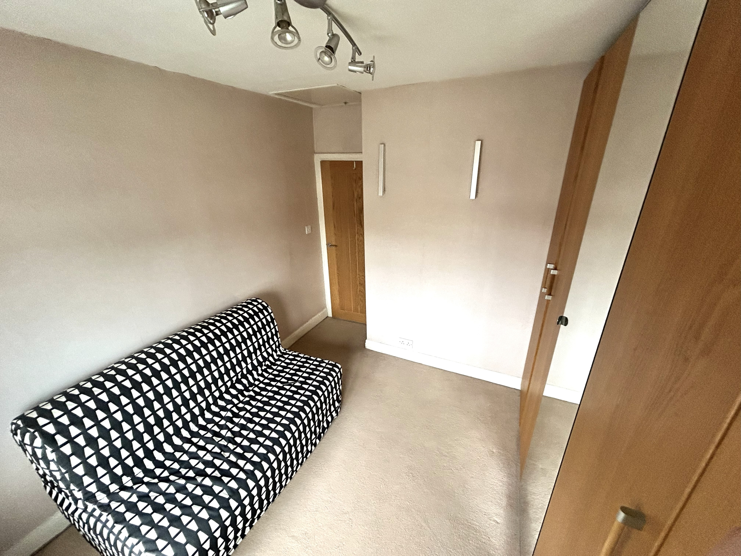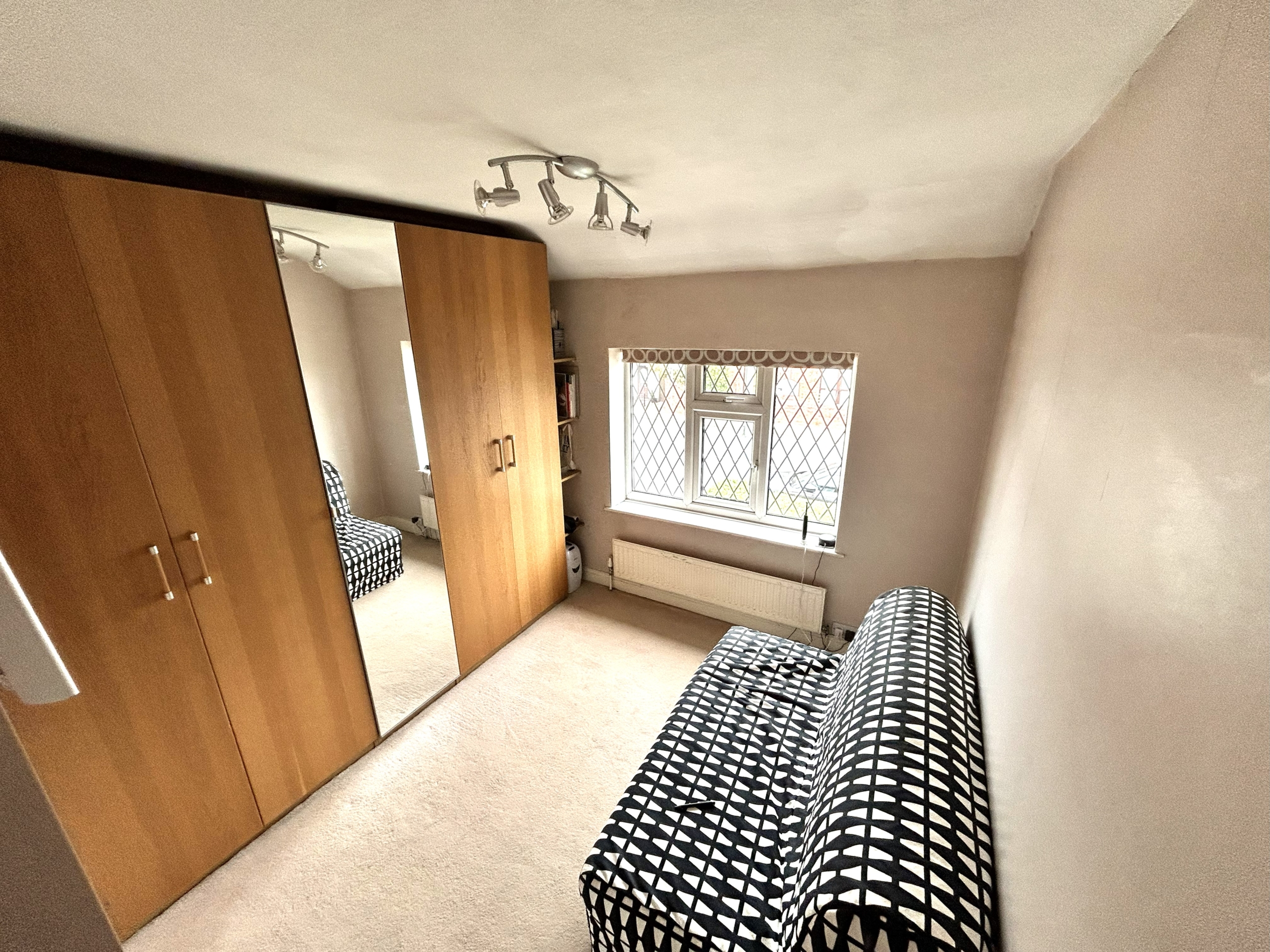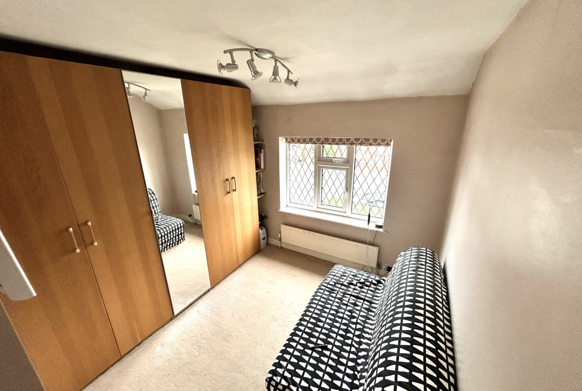 At the front of the property there is a small garden area with a driveway and space for a further car.