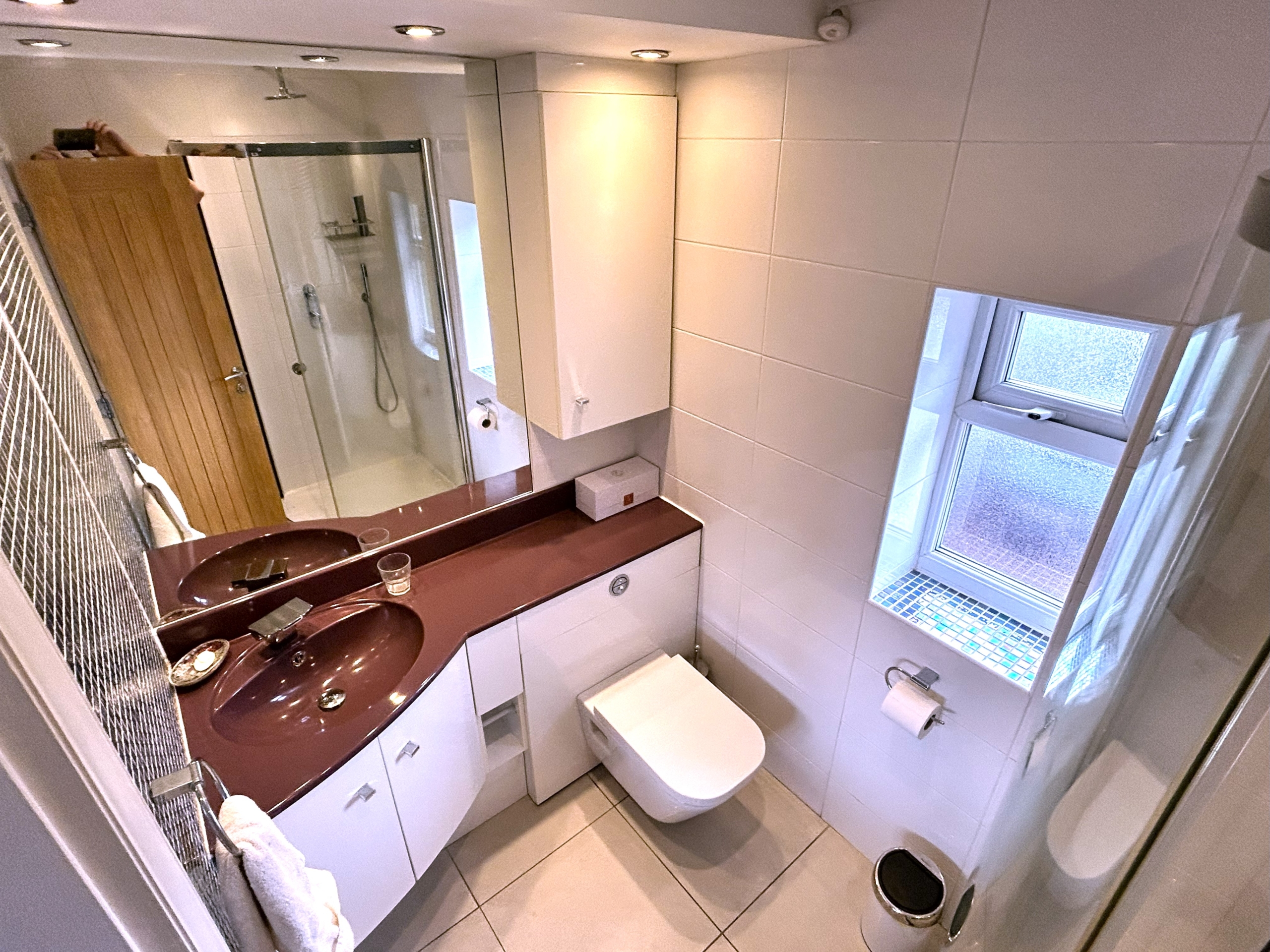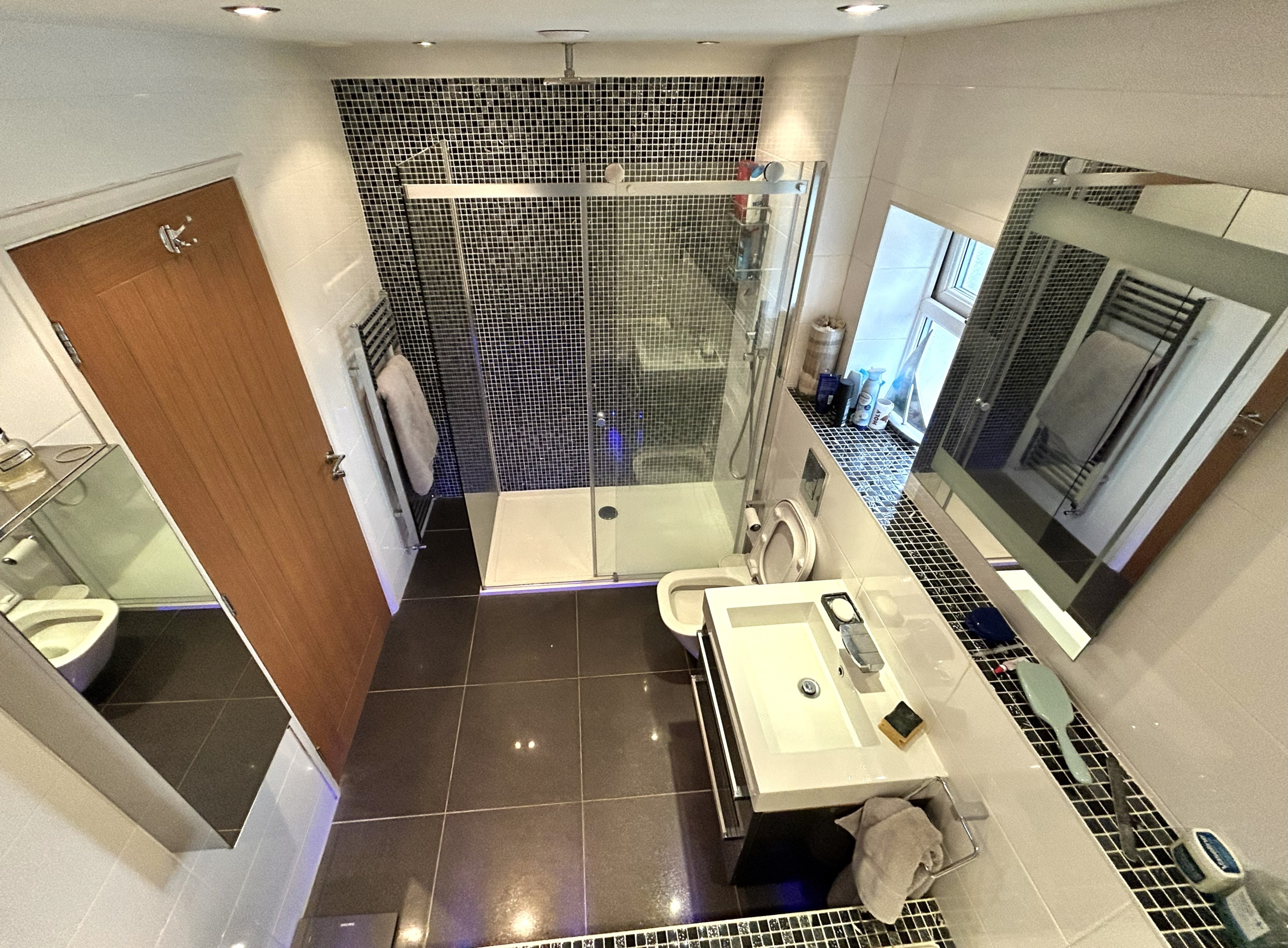 Upstairs the property boasts two double bedrooms, one of which has an en-suite shower room and walk in wardrobe. The second bedroom also features built in wardrobes. The main bathroom is generously sized incorporating large walk-in shower and separate jacuzzi bath all with luxury fittings and underfloor heating. Finally, the upstairs space offers a separate home office/study room (with roof light) and boarded loft access for further storage.